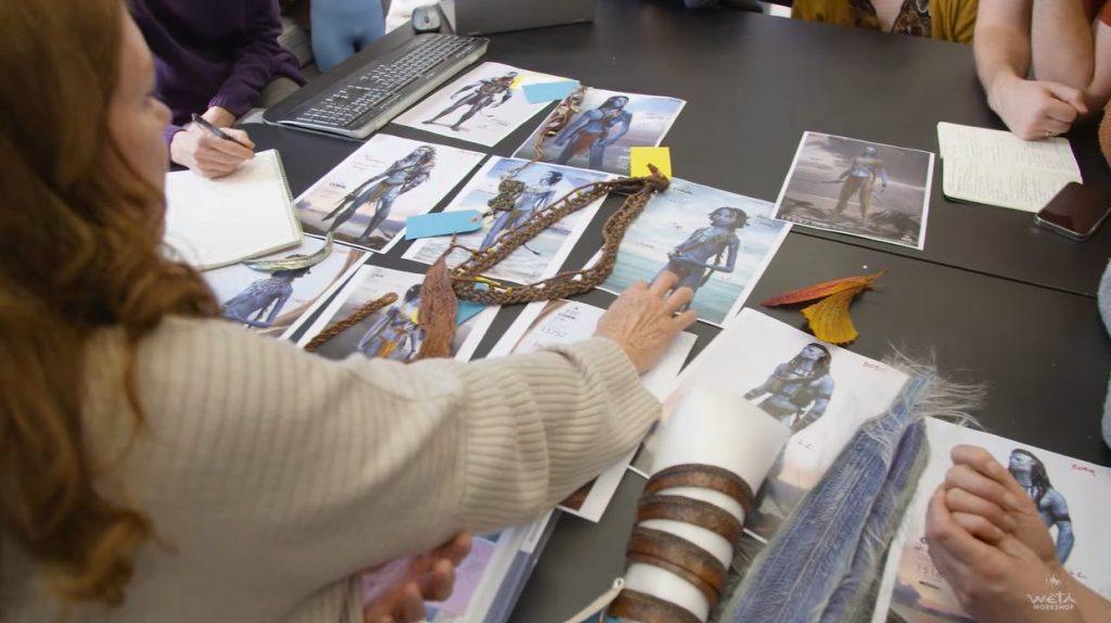 O que muitos não sabem é que antes de passar para o digital, as peças eram todas desenhadas e produzidas pela equipe de figurino na vida real, com Deborah L. Scott no comando, a designer que já participou da produção de dois filmes da saga. Assim como vários outros aspectos que envolvem os filmes de Avatar, que se concentram em efeitos práticos, o figurino não ficou de fora dessas técnicas. Muito além do design, existe também a construção física dessas peças.